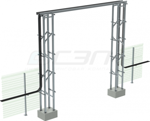 Конструкции переходов над дорогами, воротами представляют собой участки кабельной эстакады, состоящие из колонн и балок.