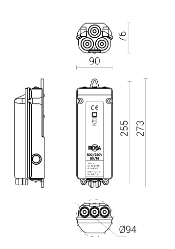 вводные щитки с 5-ю клеммами для питающих кабелей сечением: от 5 x 6 мм² до 5 x 16 мм² (макс. 3 кабеля)