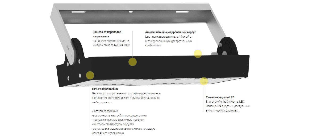 | Код | Название | Мощность LED | Полная мощность светильника | Температура цвета | Световой поток светильника | Световая производительность | Вес светильника нетто |