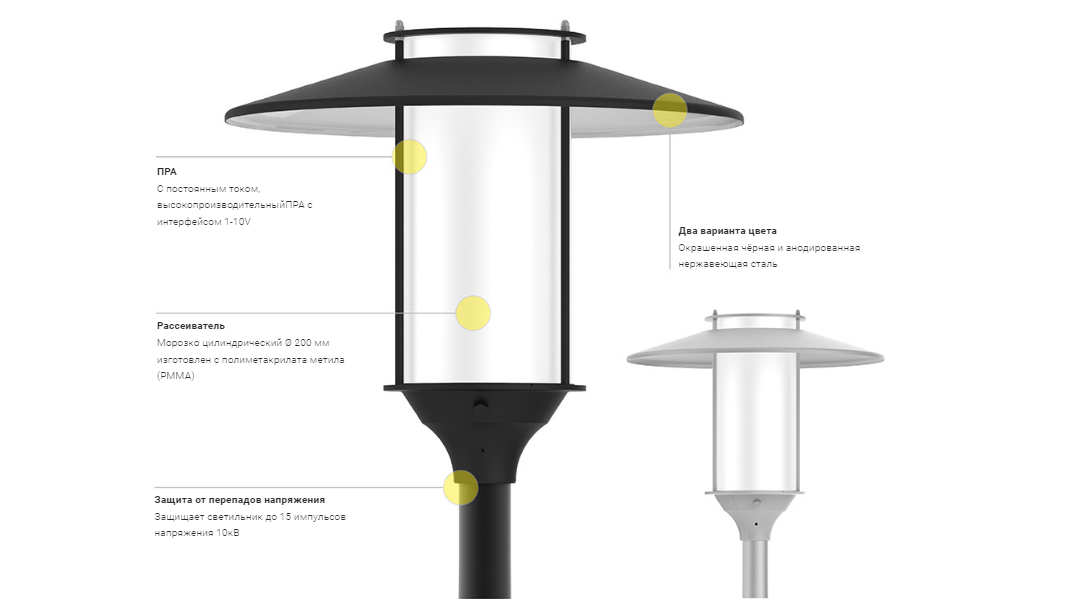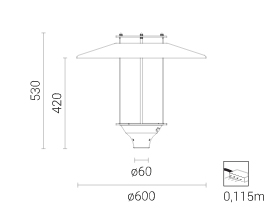 Монтаж: непосредственно на опоре или на оголовнике с окончанием ø60 x 50 мм