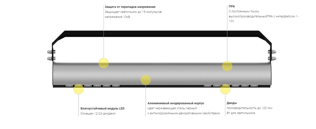 Количество светодиодов: 12 для 36W; 24 для 72W