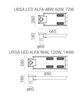 | 2221034/6/…1) | URSA LED ALFA 60 | 60W | 67W | 5000K | 9000lm | 135lm/W | 8kg |