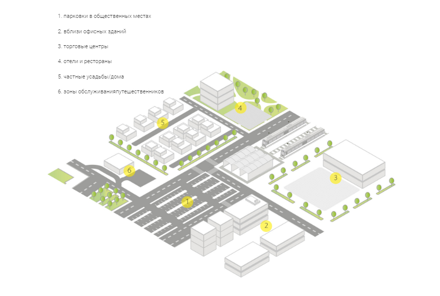 Применение: парковки в общественных местах, вблизи офисных зданий, торговые центры, отели и рестораны, частные усадьбы/дома, зоны обслуживанияпутешественников