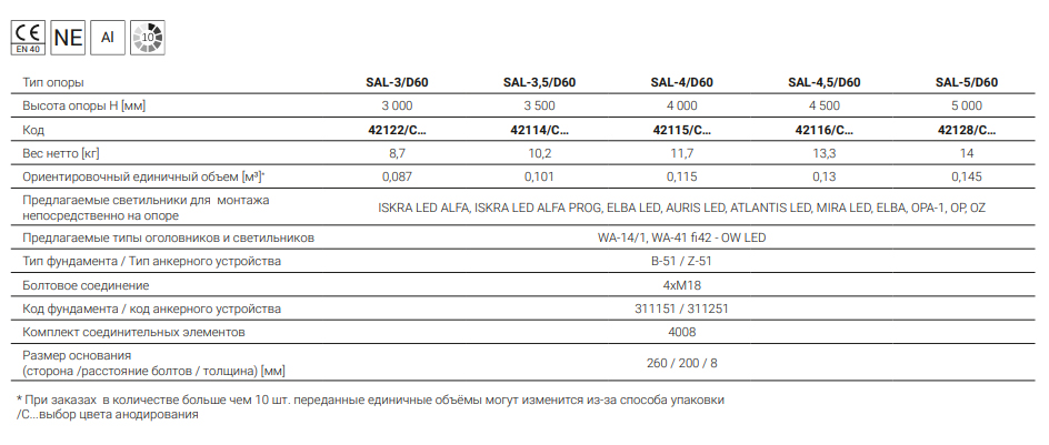 SAL-2,5/D60; SAL-3/D60; SAL-3,5/D60; SAL-4/D60; SAL-4,5/D60; SAL-5/D60