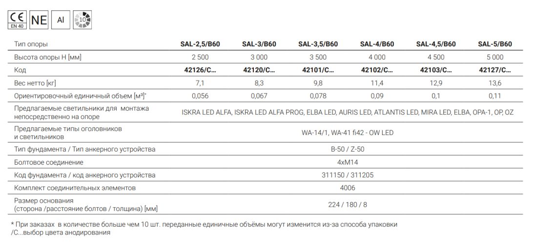 SAL-2,5/B60; SAL-3/B60; SAL-3,5/B60; SAL-4/B60; SAL-4,5/B60; SAL-5/B60