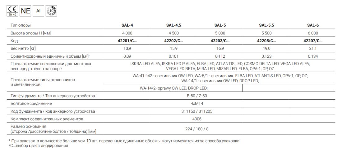 SAL-4; SAL-4,5; SAL-5; SAL-5,5; SAL-6