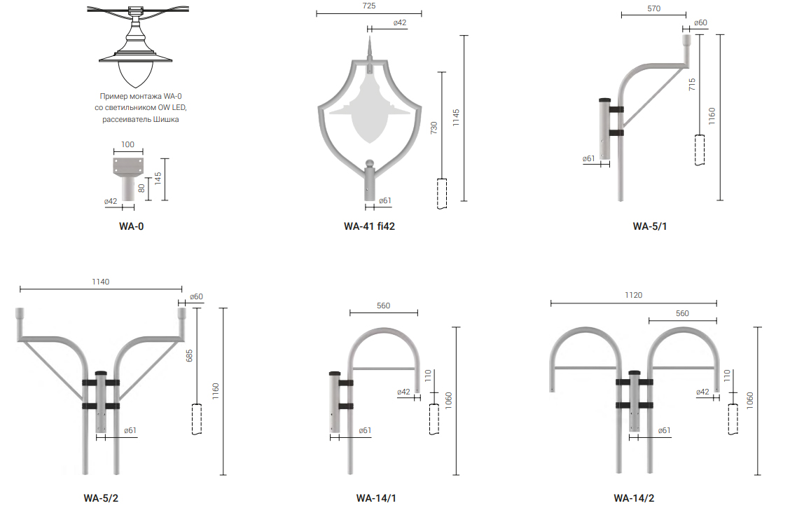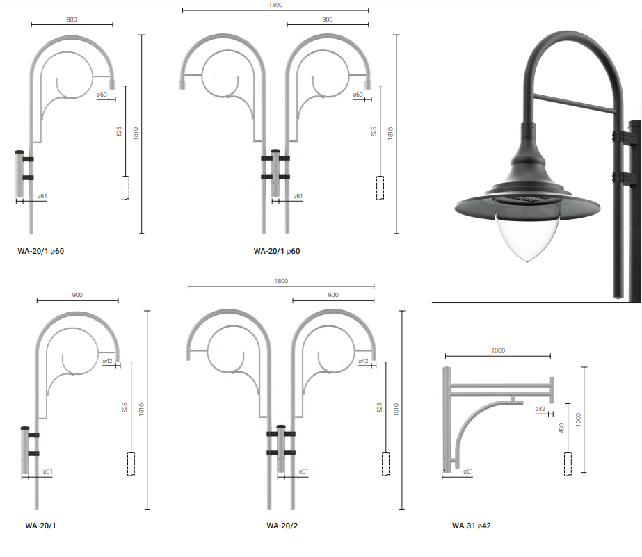 Предназначение: для монтажа на алюминиевых опорах типа SAL с окончанием ø60 x 130 / 180 мм