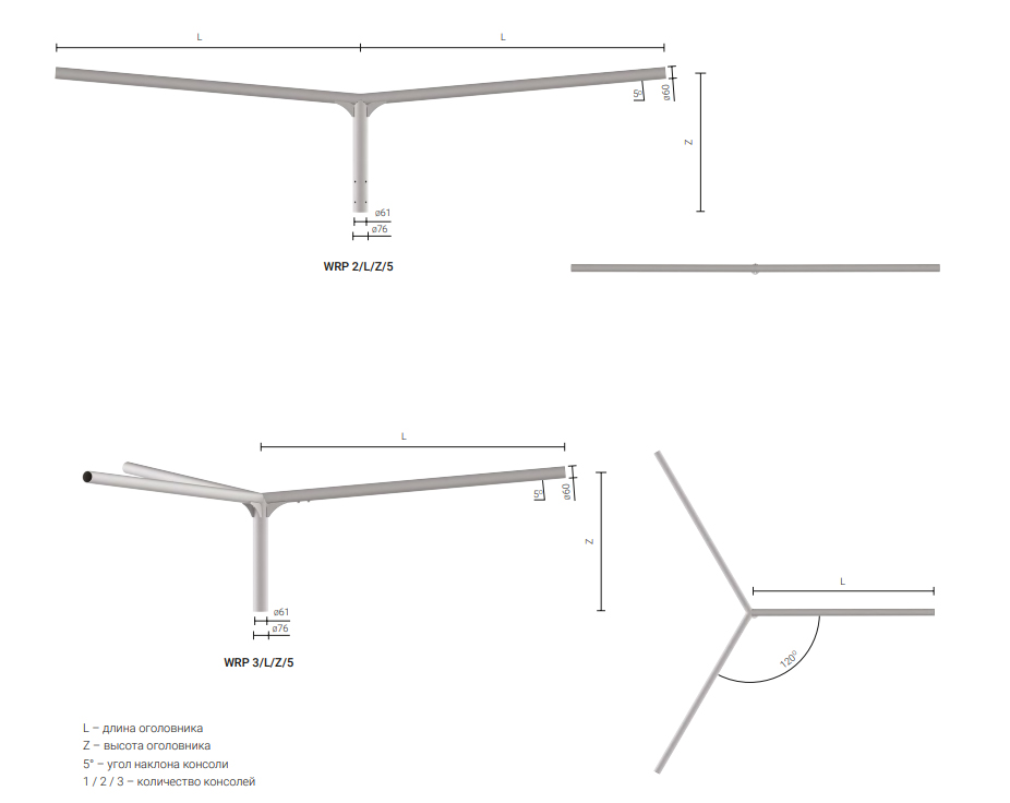 Предназначение: для монтажа на алюминиевых опорах типа SAL с окончанием ø60×180 мм
