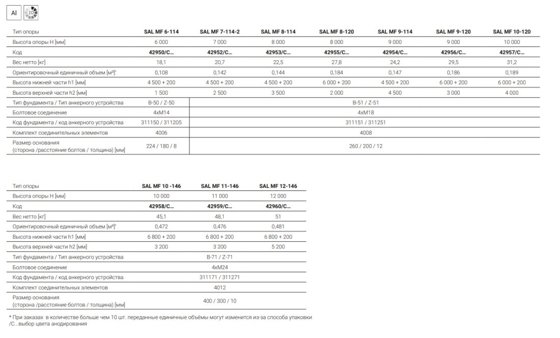 SAL MF 6-114; SAL MF 7-114-2; SAL MF 8-114; SAL MF 8-120; SAL MF 9-114; SAL MF 9-120; SAL MF 10-120; SAL MF 10 -146; SAL MF 11-146; SAL MF 12-146
