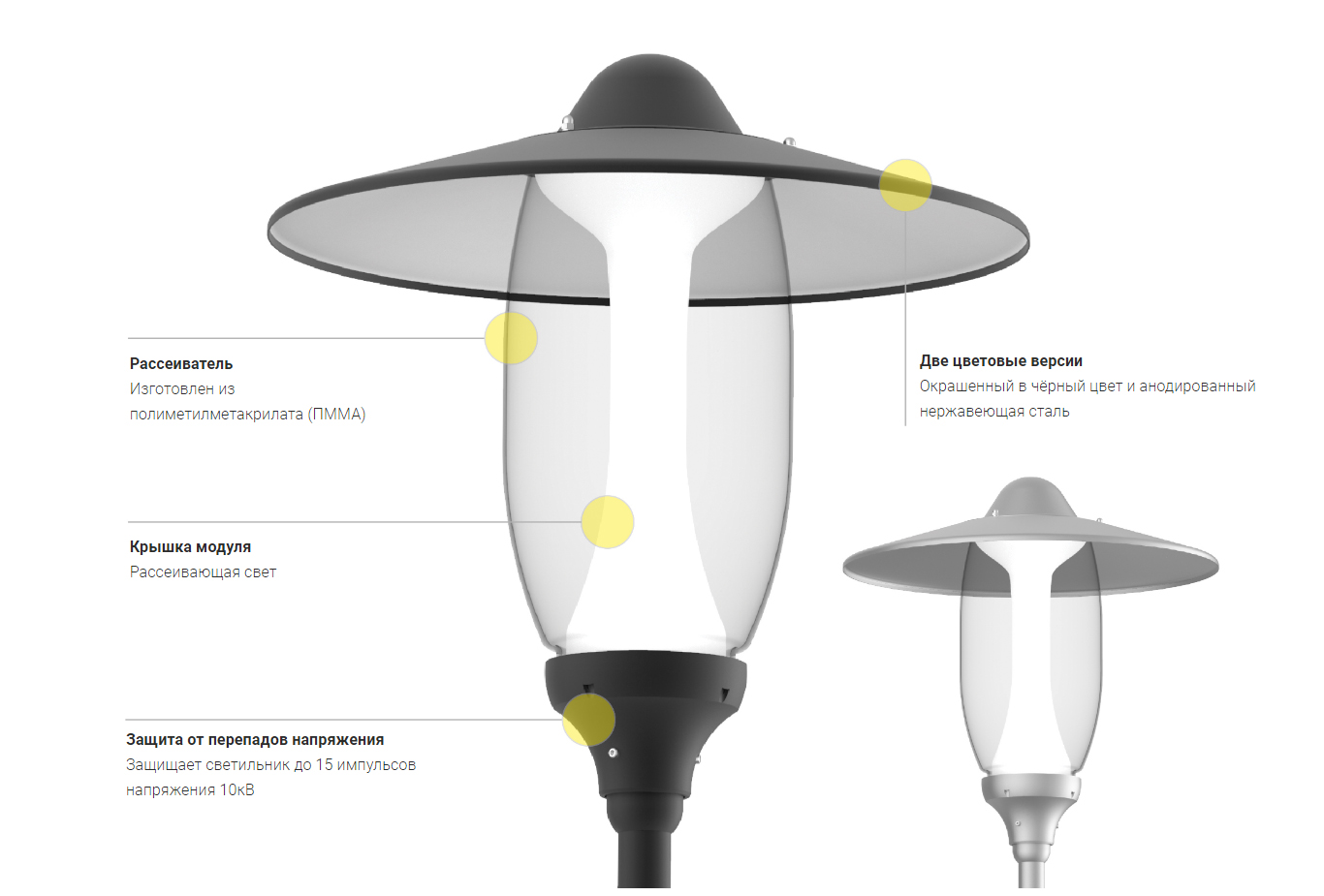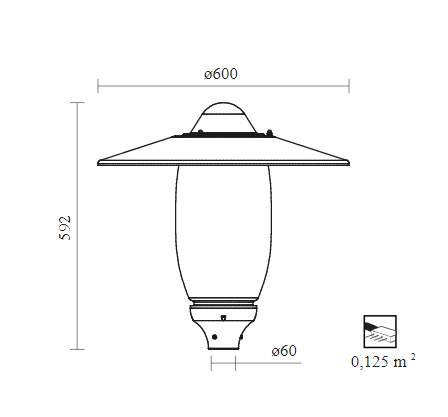 Монтаж: непосредственно на опоре или на оголовнике с окончанием ø60 x 50 мм