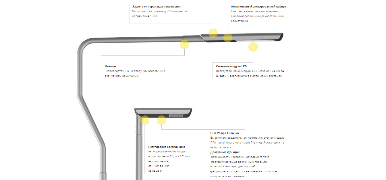 Монтаж: непосредственно на опору или оголовник с окончанием ø60×100 мм